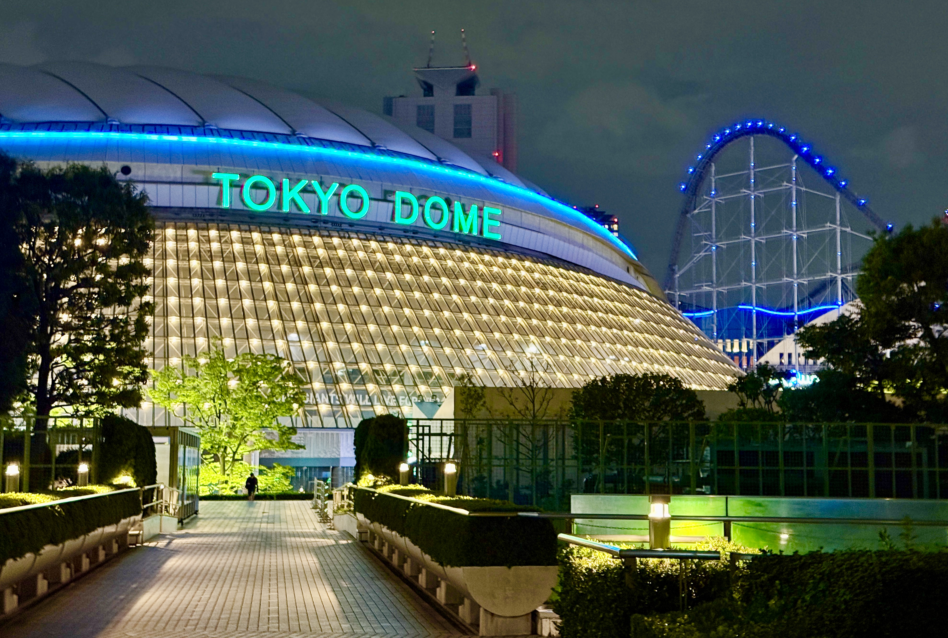 東京ドームシティは、いつだって華やいでいる。東京ドーム、アトラクション、スパ、商業施設……長嶋・王のレリーフが古(いにしえ)の後楽園球場へと誘う。時空を超え、日常と非日常が交差する空間にそびえ立つのは、本日の目的地、東京ドームホテル。