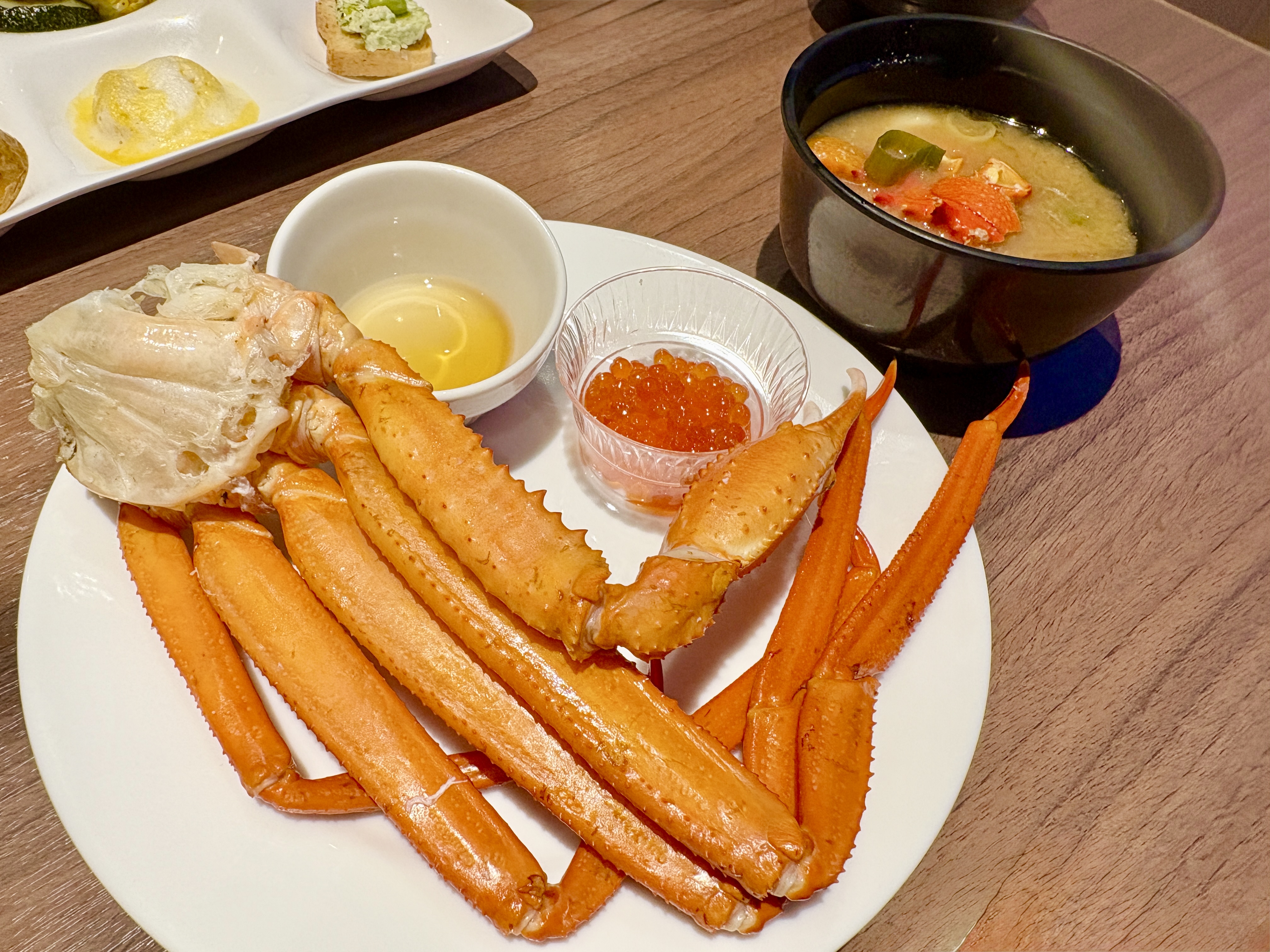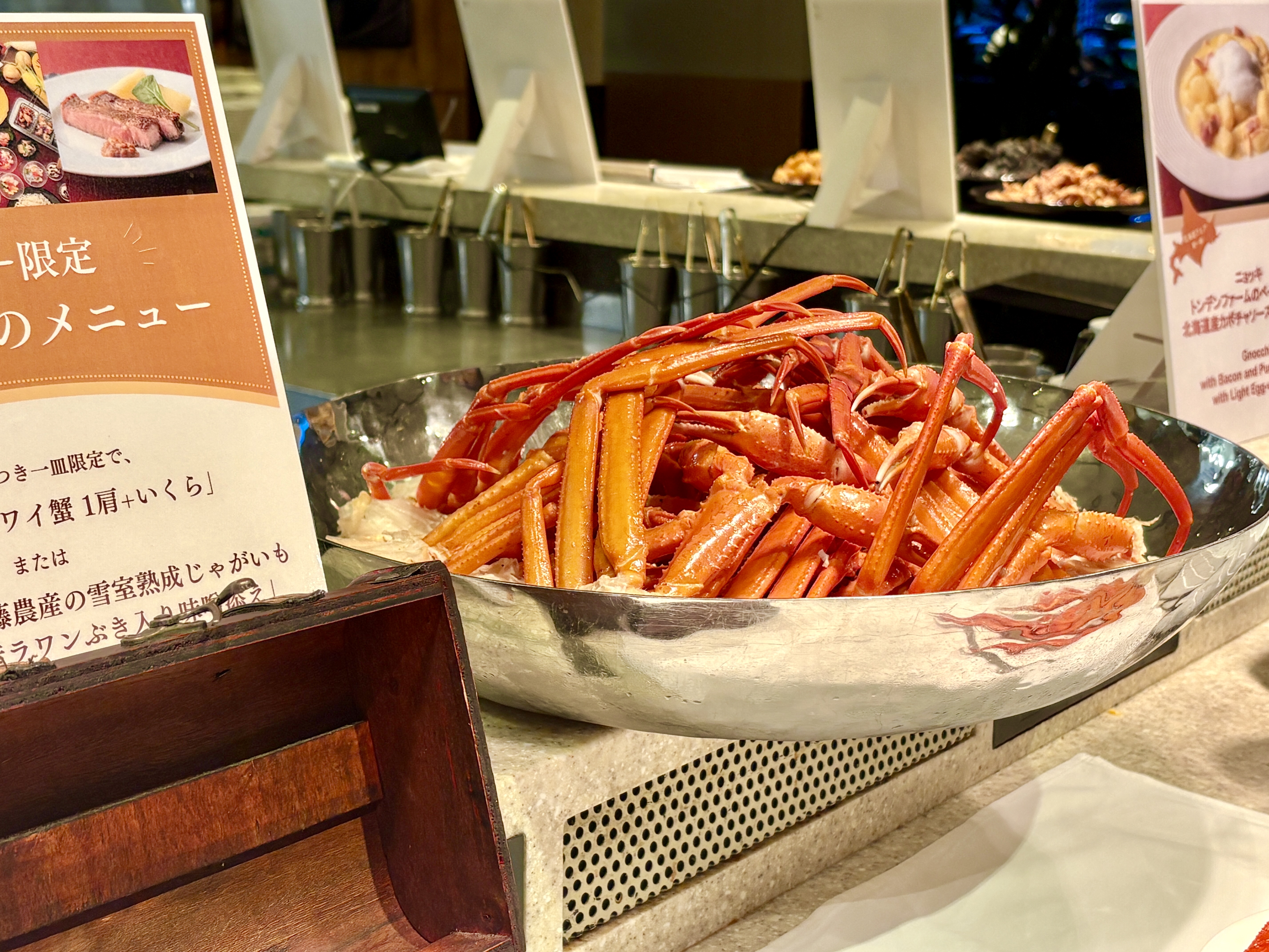 とてもブッフェとは思えないハイレベルな2皿に、満足度は急上昇。ちなみにこちらはディナー限定メニューで、ランチでは「北海道産紅ズワイ蟹 1肩」もしくは「北海道産ホタテ殻焼き」が選べるそうです。