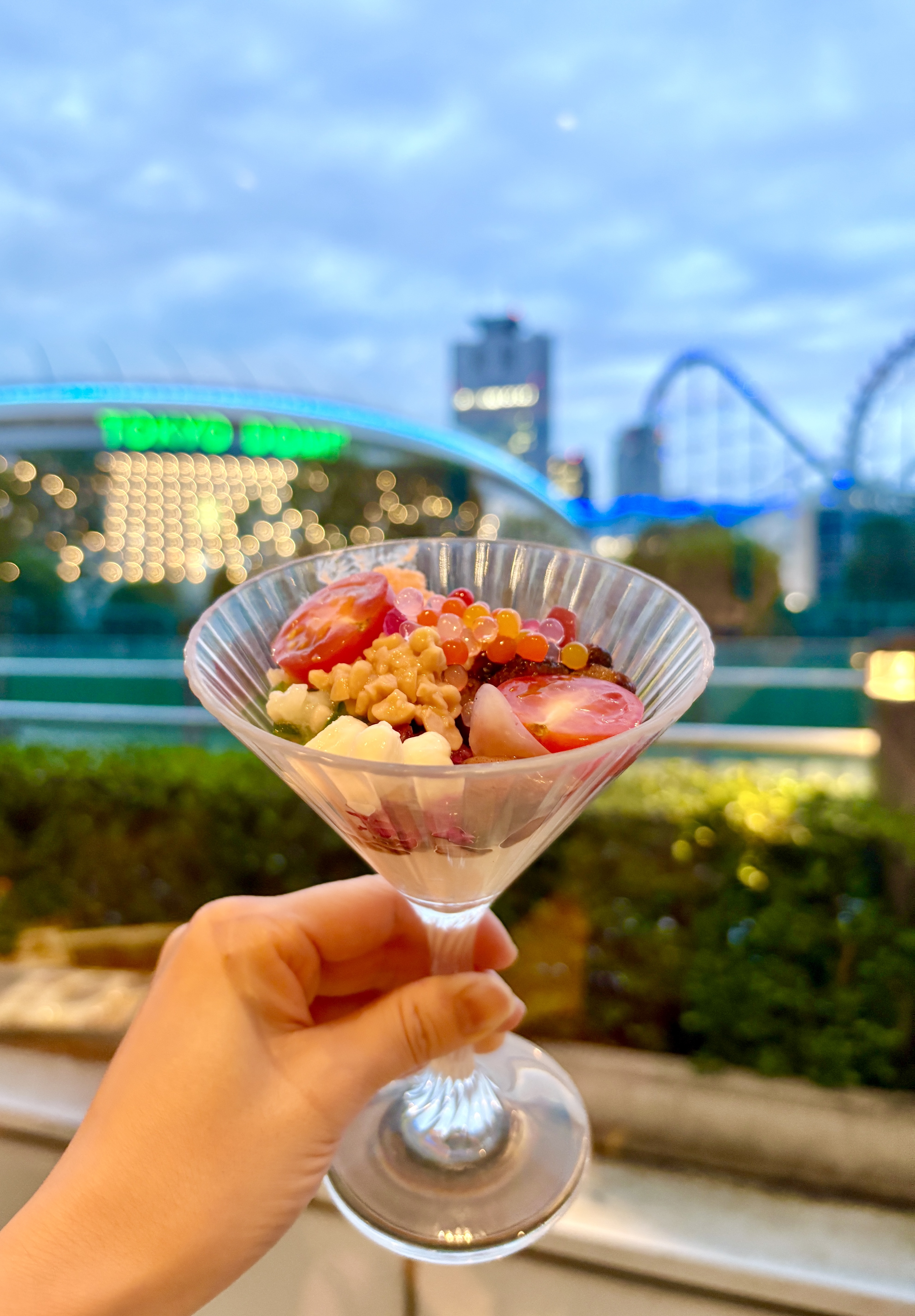自分の好きな物だけで作った海鮮パフェは、まるで宝石箱のよう。グラス×海鮮丼の組み合わせも新鮮で、作るところから食べるところまで、全てが楽しいメニューです。