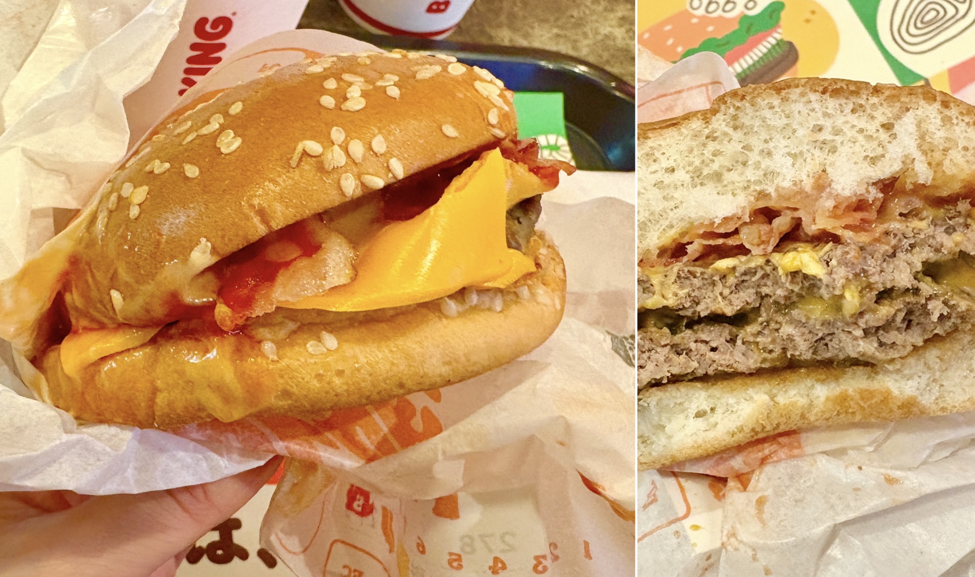 直火焼きパティの香ばしさと特製スモーキーマヨソースの深いコクが相性抜群の「フレームスモーク」シリーズは、バーガーキング®らしいジューシーでボリューミーな美味しさが楽しめる逸品。3種類とも甲乙つけ難い美味しさでした。