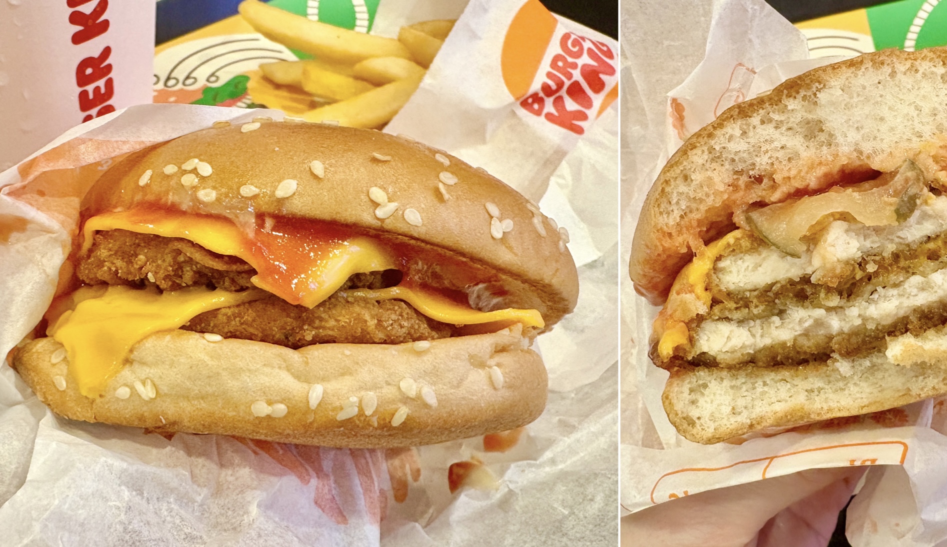 外はカリッと、中はジューシーなチキンパティが主役。スモーキーマヨのまろやかさとチキンの旨みが一体化して、ビーフパティと比べると、満足感はあるのに優しい口当たりに仕上がっています。