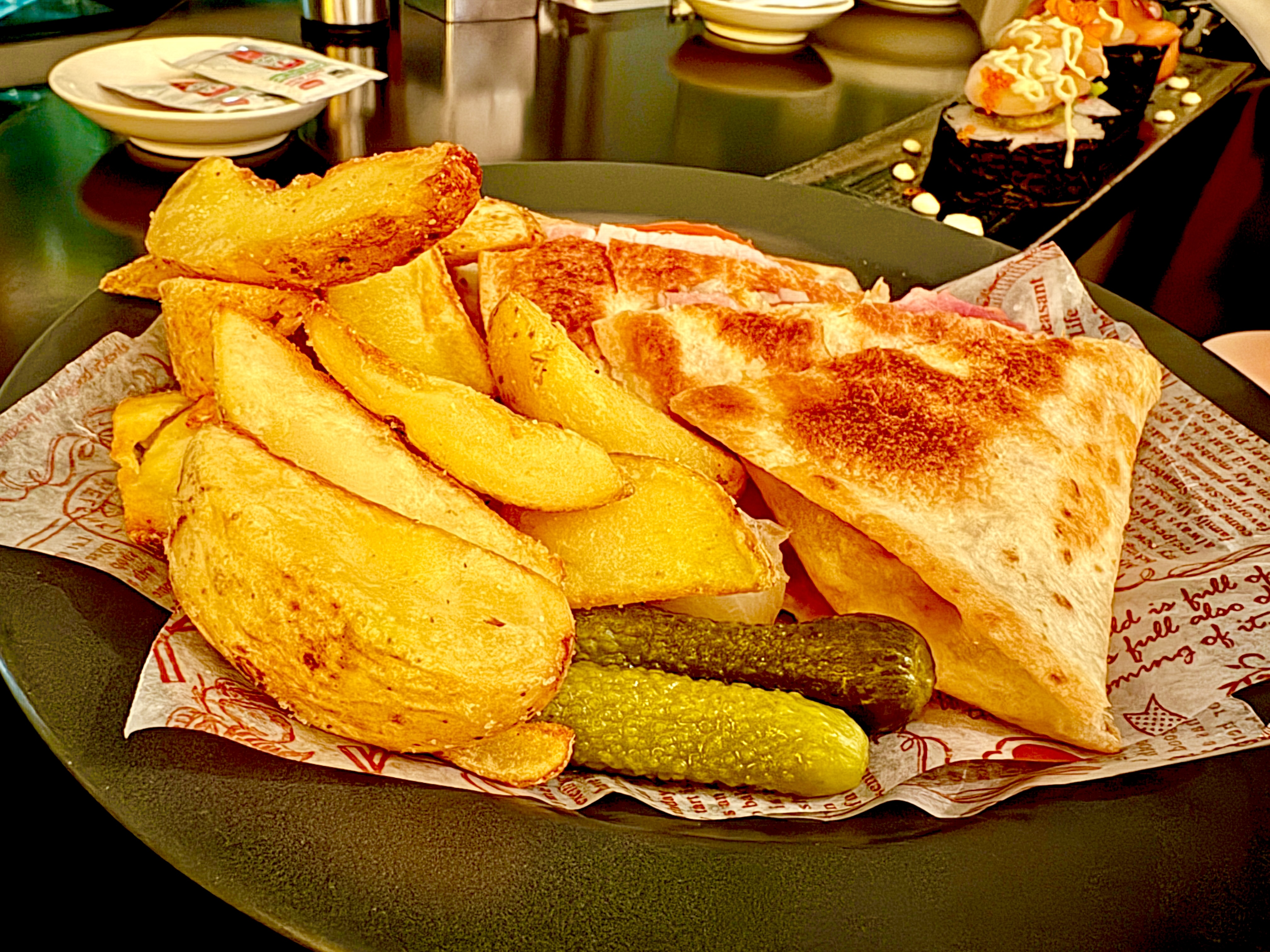 そして広報さんおすすめの「ケサディーヤ フレンチフライ添え」も絶品。パリッとした生地に熱々のチーズの組み合わせは、ついつい手が伸びてしまいます。