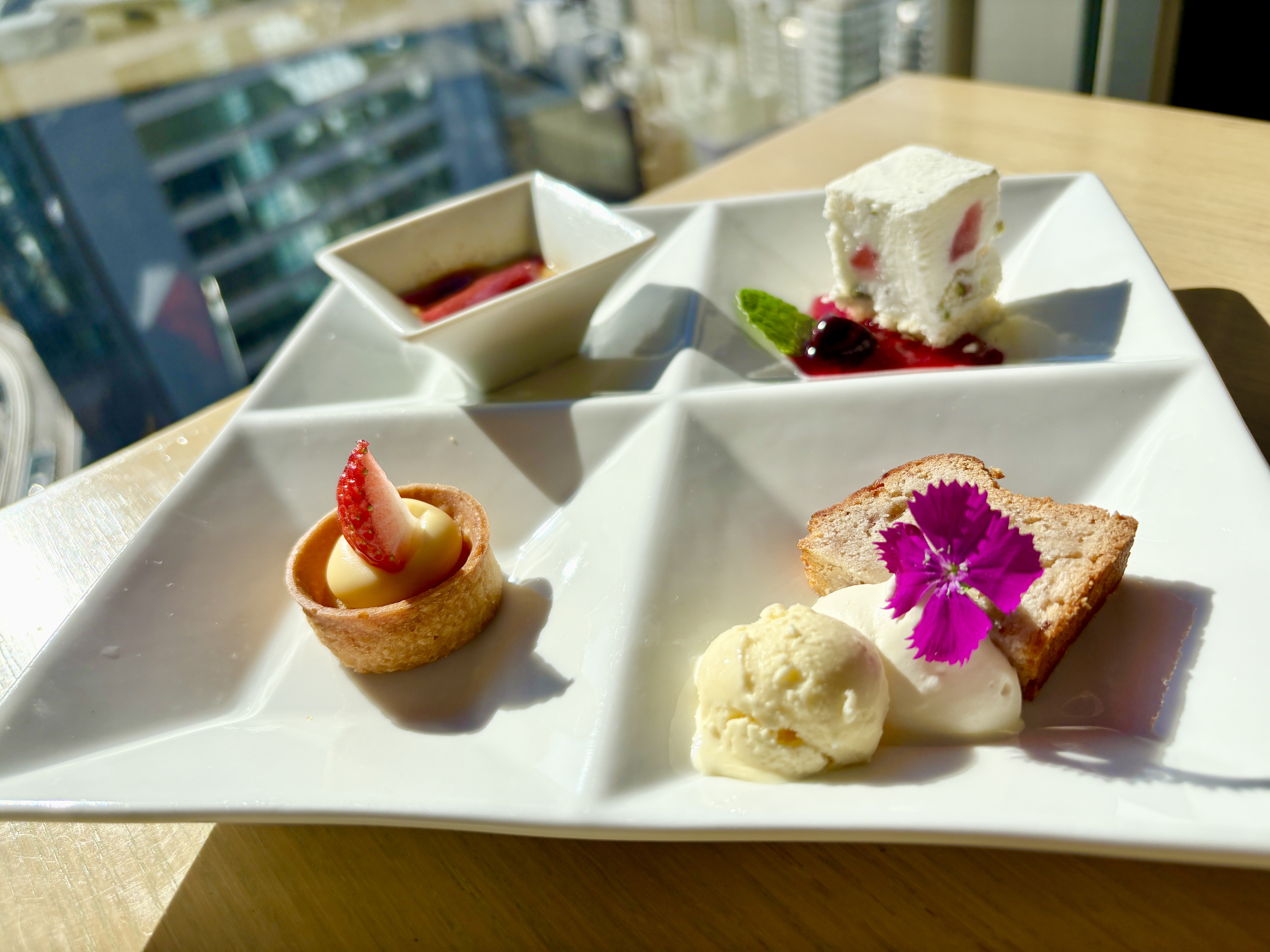 デザートは「パティシエ自慢の手作りデザート4種盛合せ」。ミニサイズではありますが見た目も美しく、どれもホテルクオリティを感じさせるレベルの高いスイーツ揃いでした。
